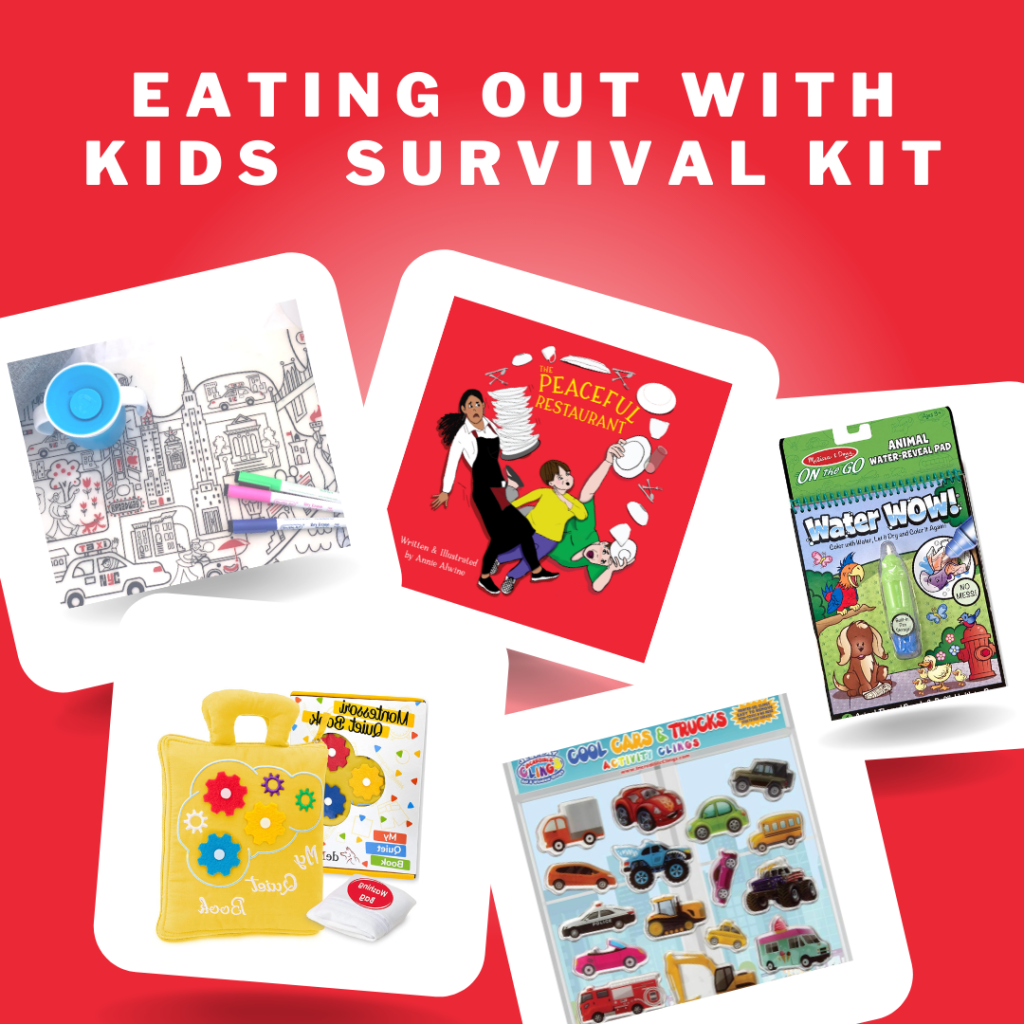 The more activities you can fit in your bag the better. Keep your little ones busy so you can enjoy adult conversation. Here are some of my favorite go-to activities when we are eating out.
