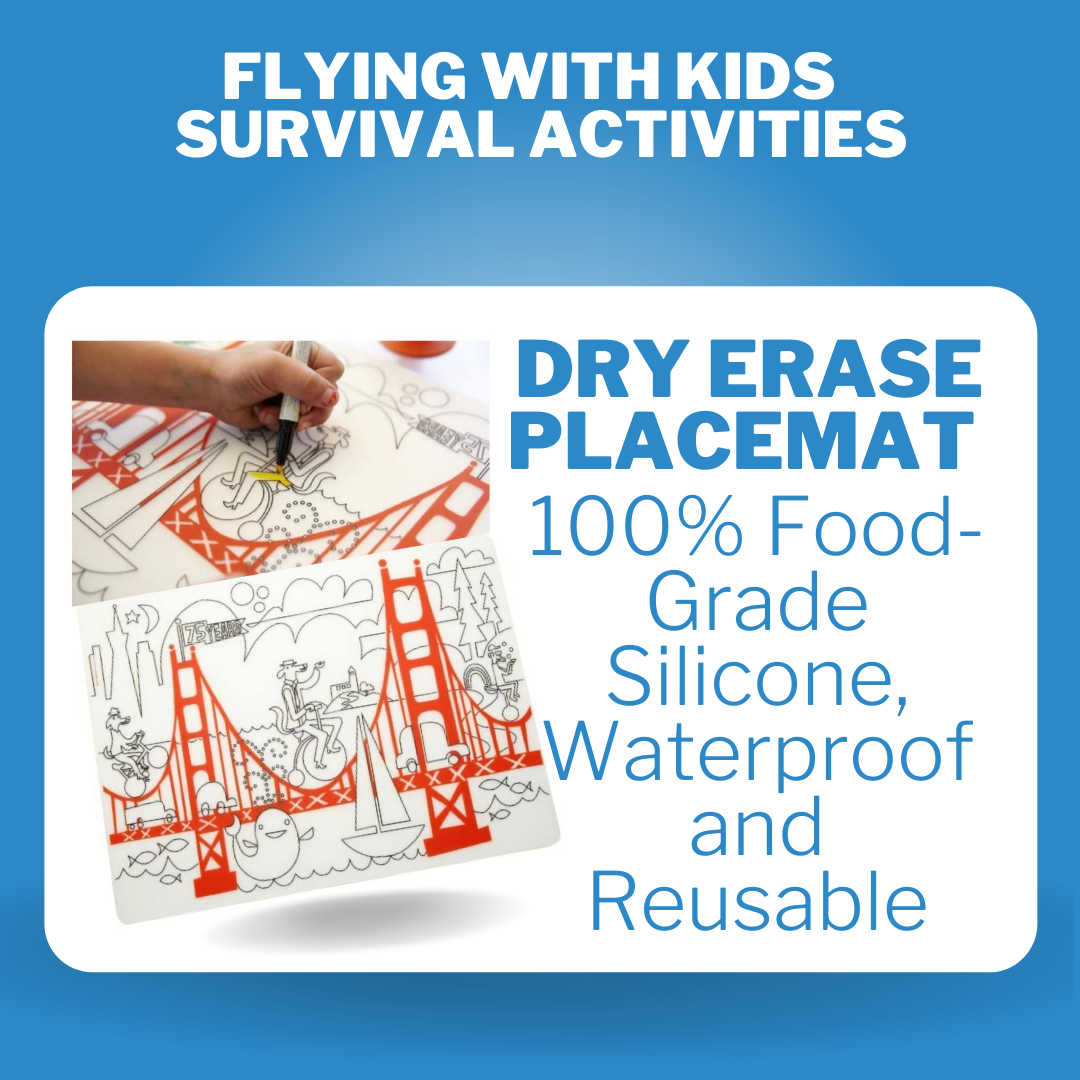 Even the promise of unrestricted screen time isn’t enough for a long flight. Kids do get bored with their shows! Bring more activities than you think you’ll need. Remember you have your return flight as well. A few weeks before your trip hide all of this stuff. It will feel new and exciting on the plane. I’ll do a separate post just on theses activities soon, but here are some ideas: